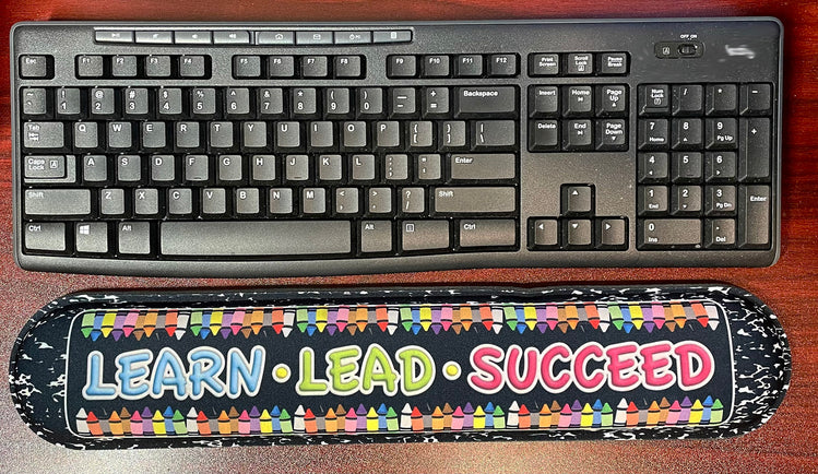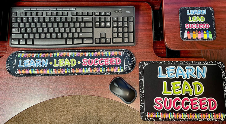 Computer Desk Mats, Set of 3, 1 ea Mouse Pad, 1 ea Keyboard Wrist Pad, 1 ea Coaster, Learn, Lead, Succeed, Crayon Composition, The keyboard wrist rest and mouse pad are made of memory foam. The keyboard wrist rest is stable and easy to use. It bounces slowly, providing lasting support for the wrist. The fabric on the surface is very light, soft and durable. Smooth surface allows the mouse to move more accurately.The edges are reinforced to prevent deformation and damage.That's really high quality!