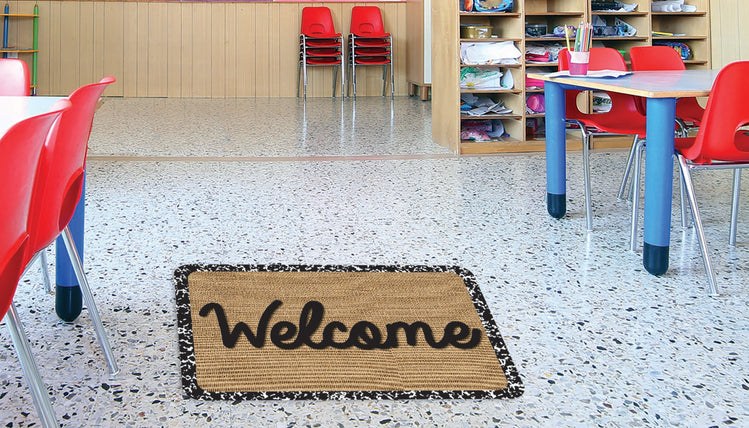 The Original Fun Mat, Welcome Mat, 15.5" x 23.5", Burlap Composition Welcome, Transform Your Classroom with our Vibrant Decorative Floor Mats! Elevate your learning environment with our eye-catching and durable floor mats designed to inspire and engage students. The slip-resistant, heavy rubber backing ensures safety, while the absorbent, printed soft surface makes cleaning a breeze.