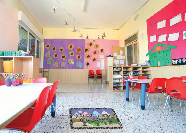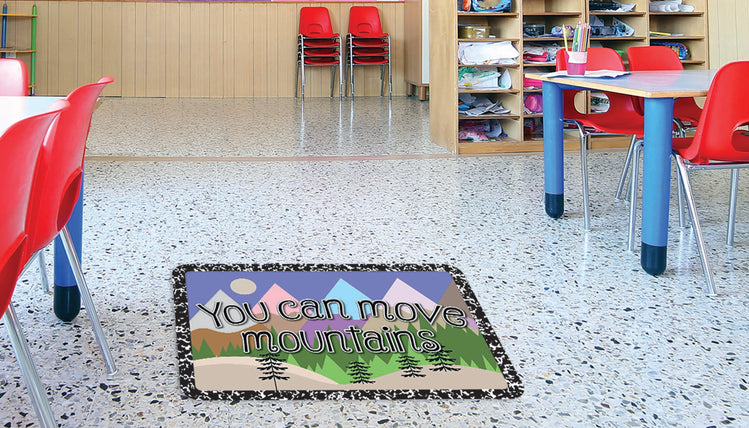 The Original Fun Mat, Welcome Mat, 15.5" x 23.5", You Can Move Mountains, Transform Your Classroom with our Vibrant Decorative Floor Mats! Elevate your learning environment with our eye-catching and durable floor mats designed to inspire and engage students. The slip-resistant, heavy rubber backing ensures safety, while the absorbent, printed soft surface makes cleaning a breeze.