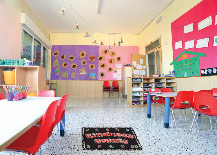 The Original Fun Mat, Welcome Mat, 15.5" x 23.5", Kindness Counts, Transform Your Classroom with our Vibrant Decorative Floor Mats! Elevate your learning environment with our eye-catching and durable floor mats designed to inspire and engage students. The slip-resistant, heavy rubber backing ensures safety, while the absorbent, printed soft surface makes cleaning a breeze.