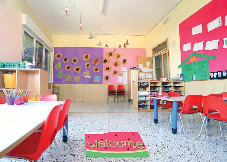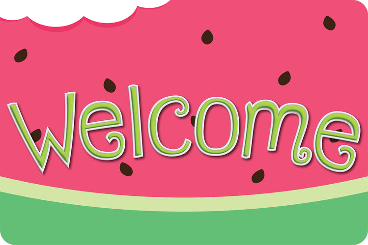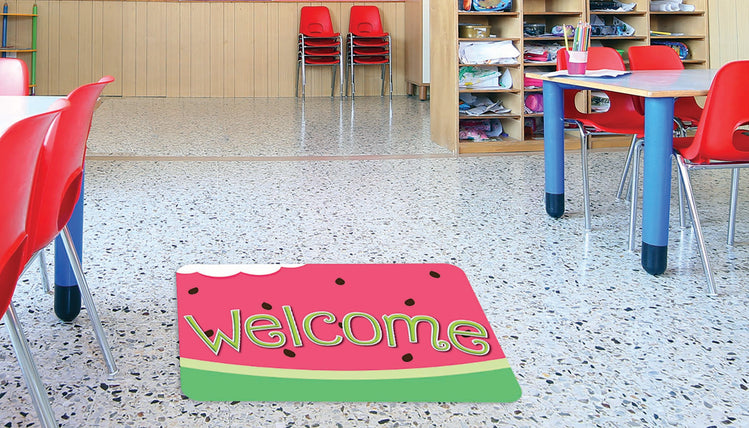 The Original Fun Mat, Welcome Mat, 15.5" x 23.5", Watermelon Welcome, Transform Your Classroom with our Vibrant Decorative Floor Mats! Elevate your learning environment with our eye-catching and durable floor mats designed to inspire and engage students. The slip-resistant, heavy rubber backing ensures safety, while the absorbent, printed soft surface makes cleaning a breeze.