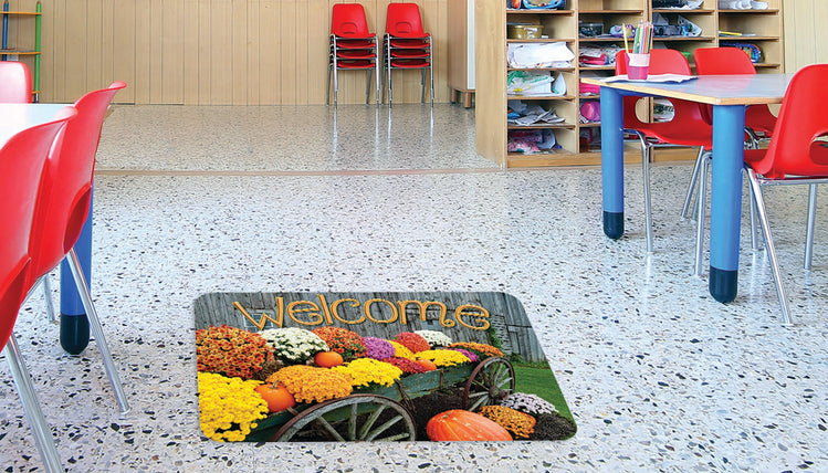 The Original Fun Mat, Welcome Mat, 15.5" x 23.5", Harvest Wagon Welcome, Transform Your Classroom with our Vibrant Decorative Floor Mats! Elevate your learning environment with our eye-catching and durable floor mats designed to inspire and engage students. The slip-resistant, heavy rubber backing ensures safety, while the absorbent, printed soft surface makes cleaning a breeze.