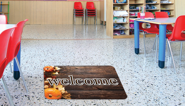 The Original Fun Mat, Welcome Mat, 15.5" x 23.5", Harvest Nuts Welcome, Transform Your Classroom with our Vibrant Decorative Floor Mats! Elevate your learning environment with our eye-catching and durable floor mats designed to inspire and engage students. The slip-resistant, heavy rubber backing ensures safety, while the absorbent, printed soft surface makes cleaning a breeze.