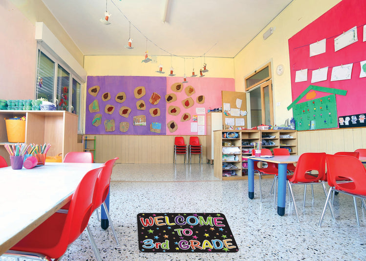 The Original Fun Mat, Welcome Mat, 15.5" x 23.5", Welcome to 3rd Grade, Transform Your Classroom with our Vibrant Decorative Floor Mats! Elevate your learning environment with our eye-catching and durable floor mats designed to inspire and engage students. The slip-resistant, heavy rubber backing ensures safety, while the absorbent, printed soft surface makes cleaning a breeze.